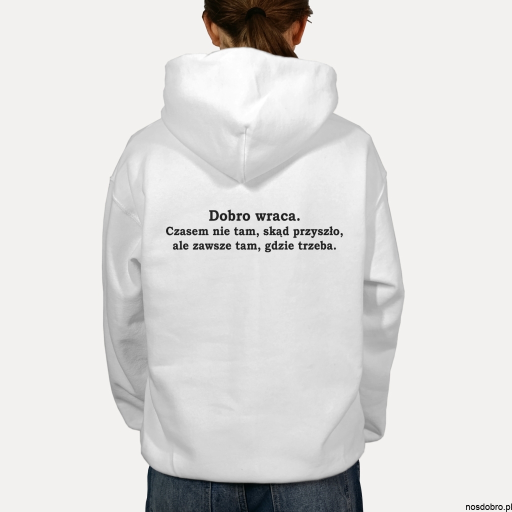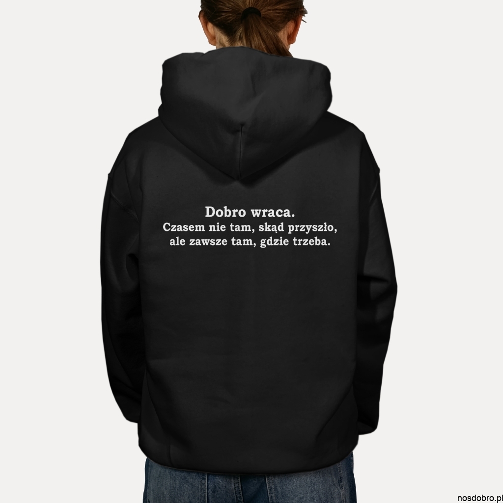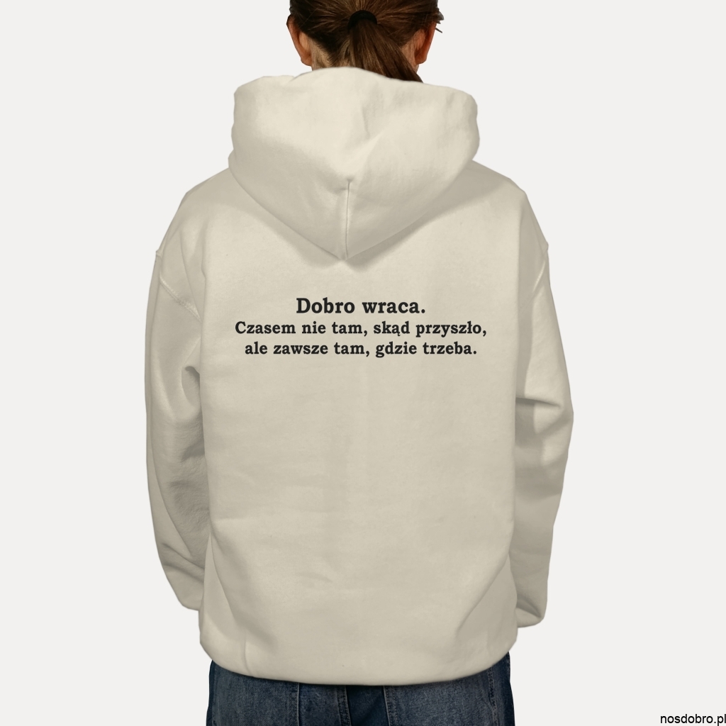 W świecie pełnym pośpiechu i chaosu, ta bluza przypomina o jednej z najprostszych, a zarazem najpiękniejszych prawd: Dobro wraca.