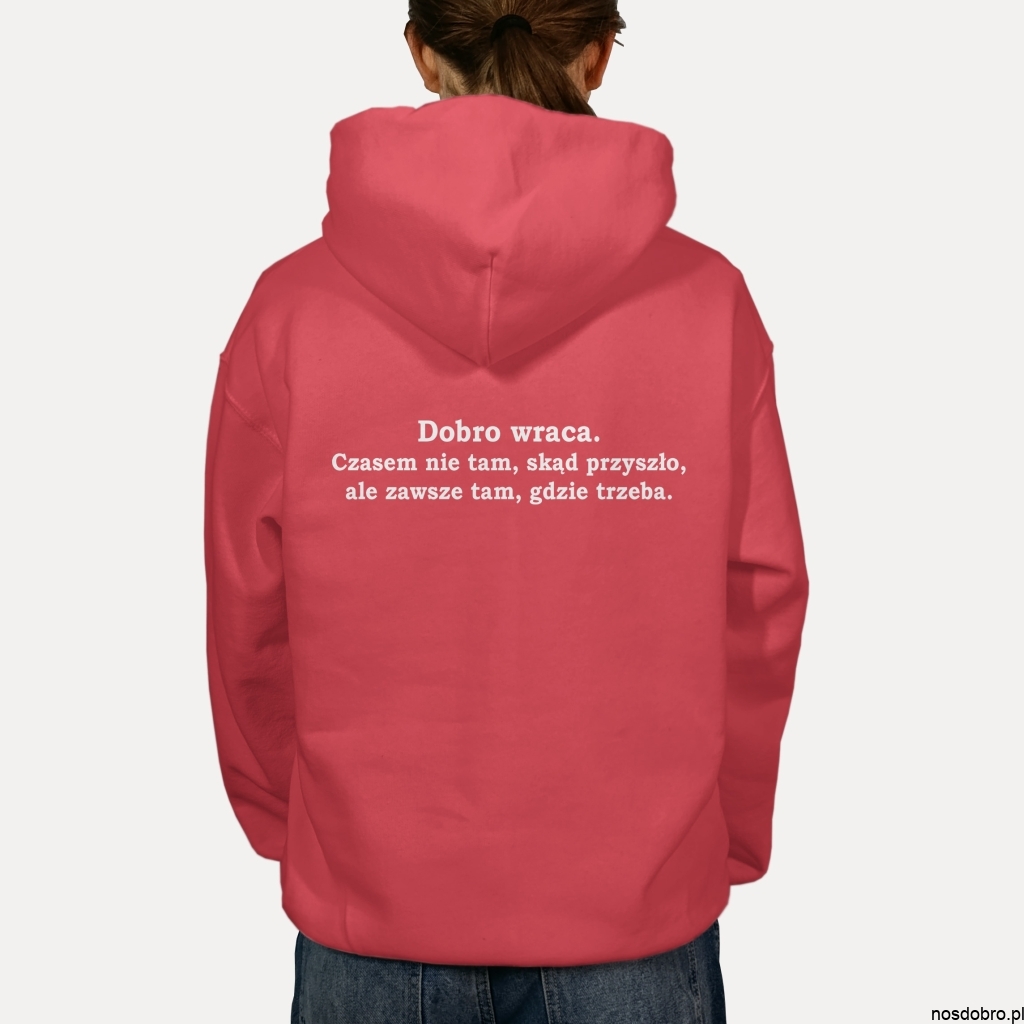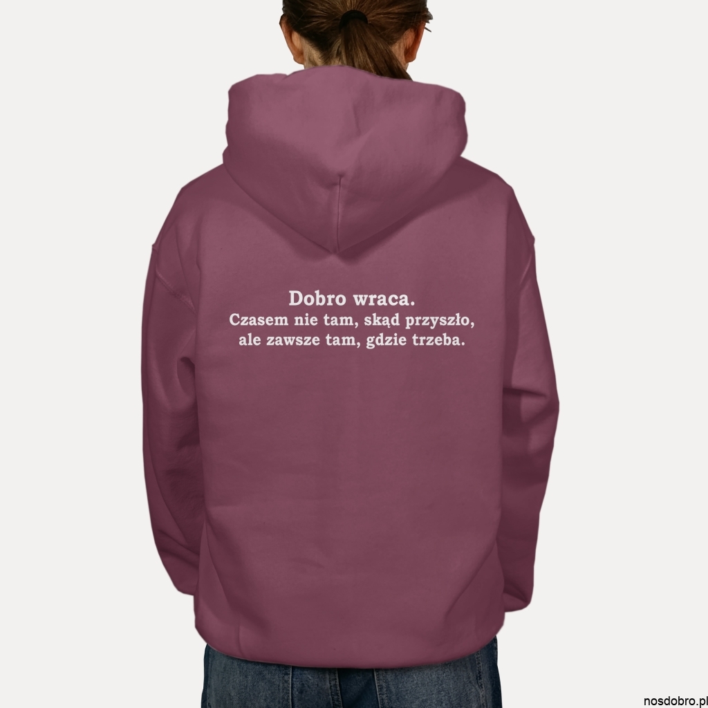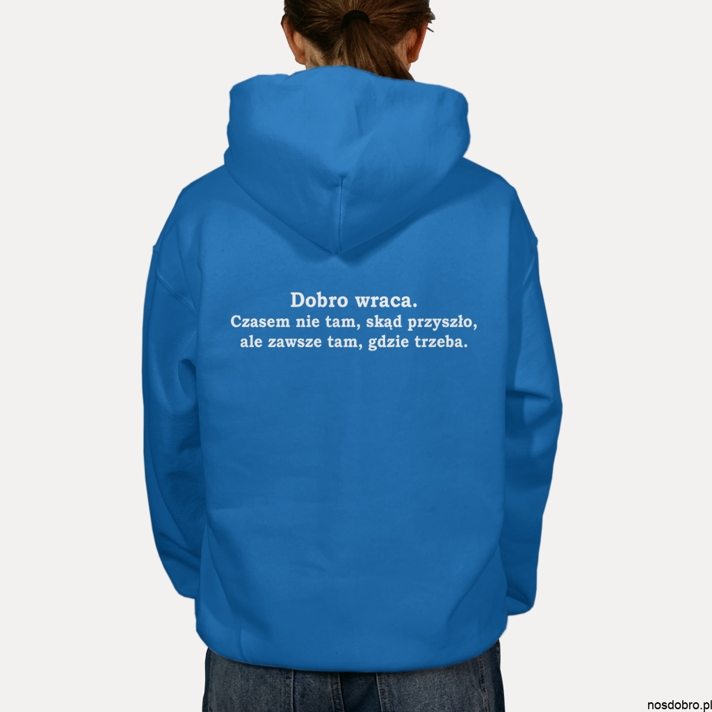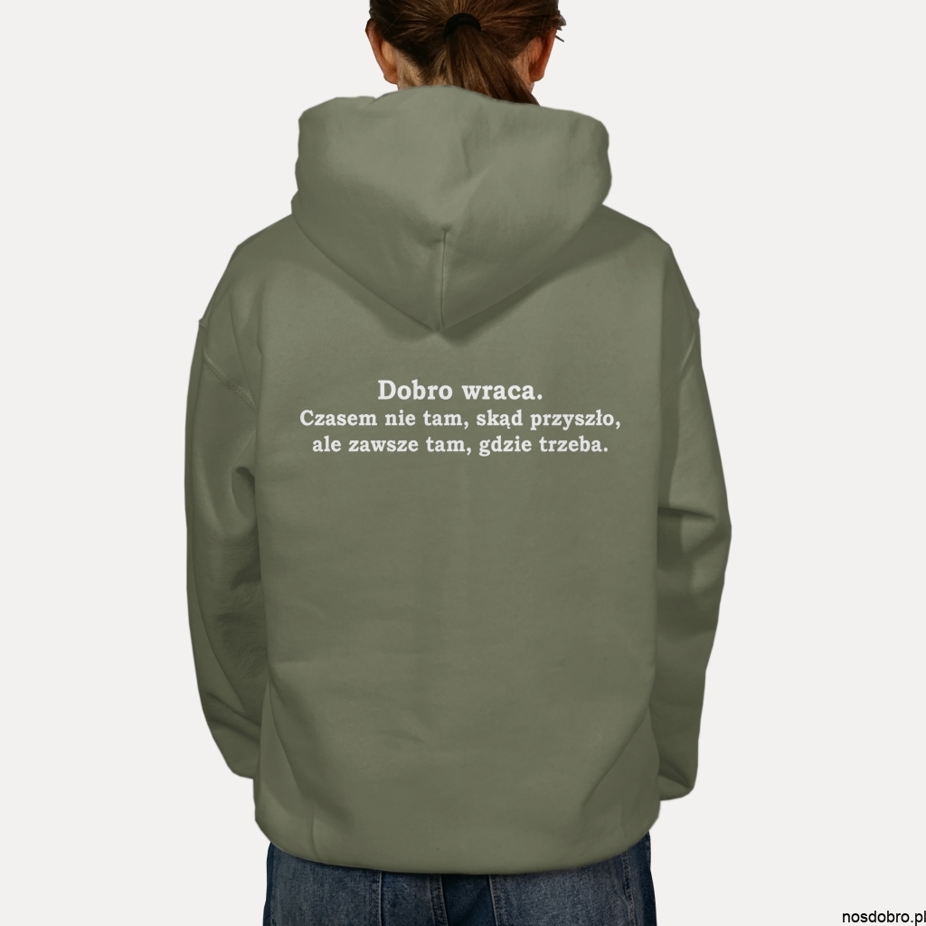 W świecie pełnym pośpiechu i chaosu, ta bluza przypomina o jednej z najprostszych, a zarazem najpiękniejszych prawd: Dobro wraca.