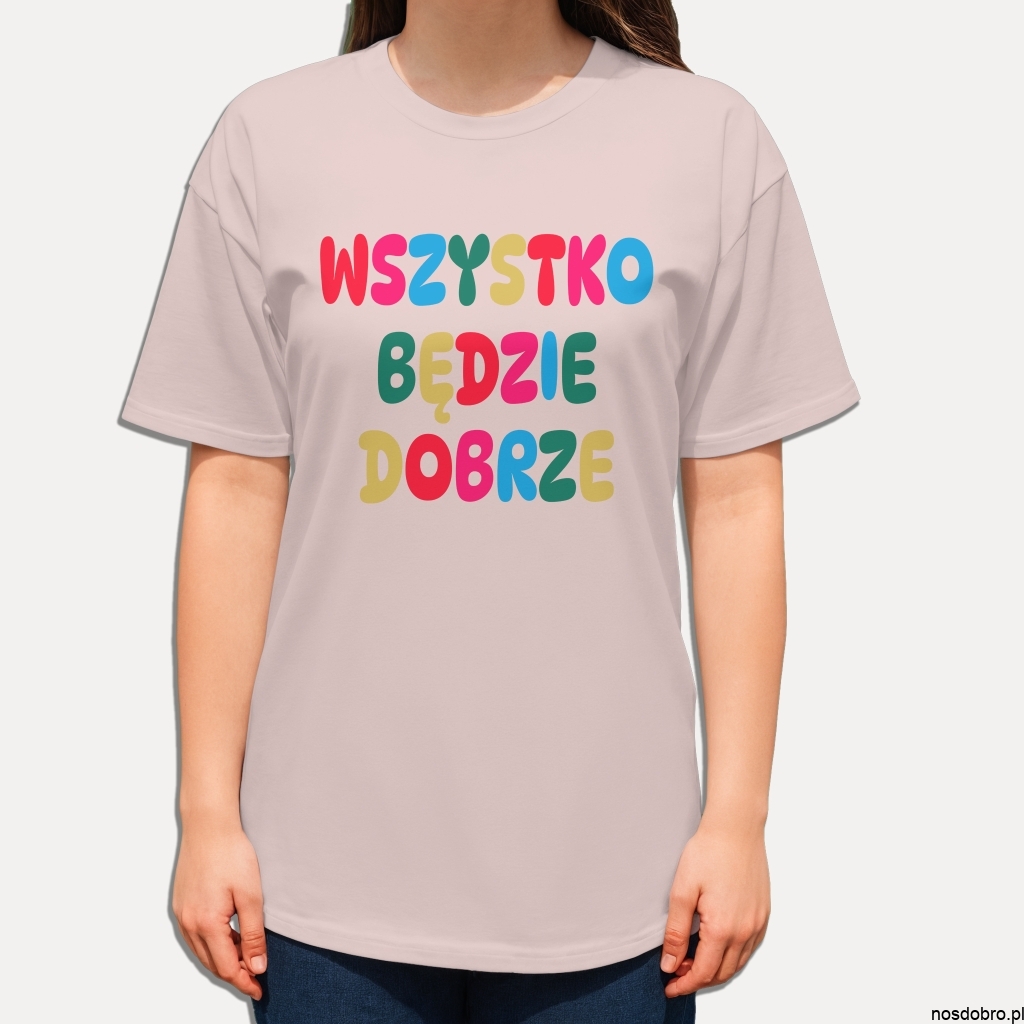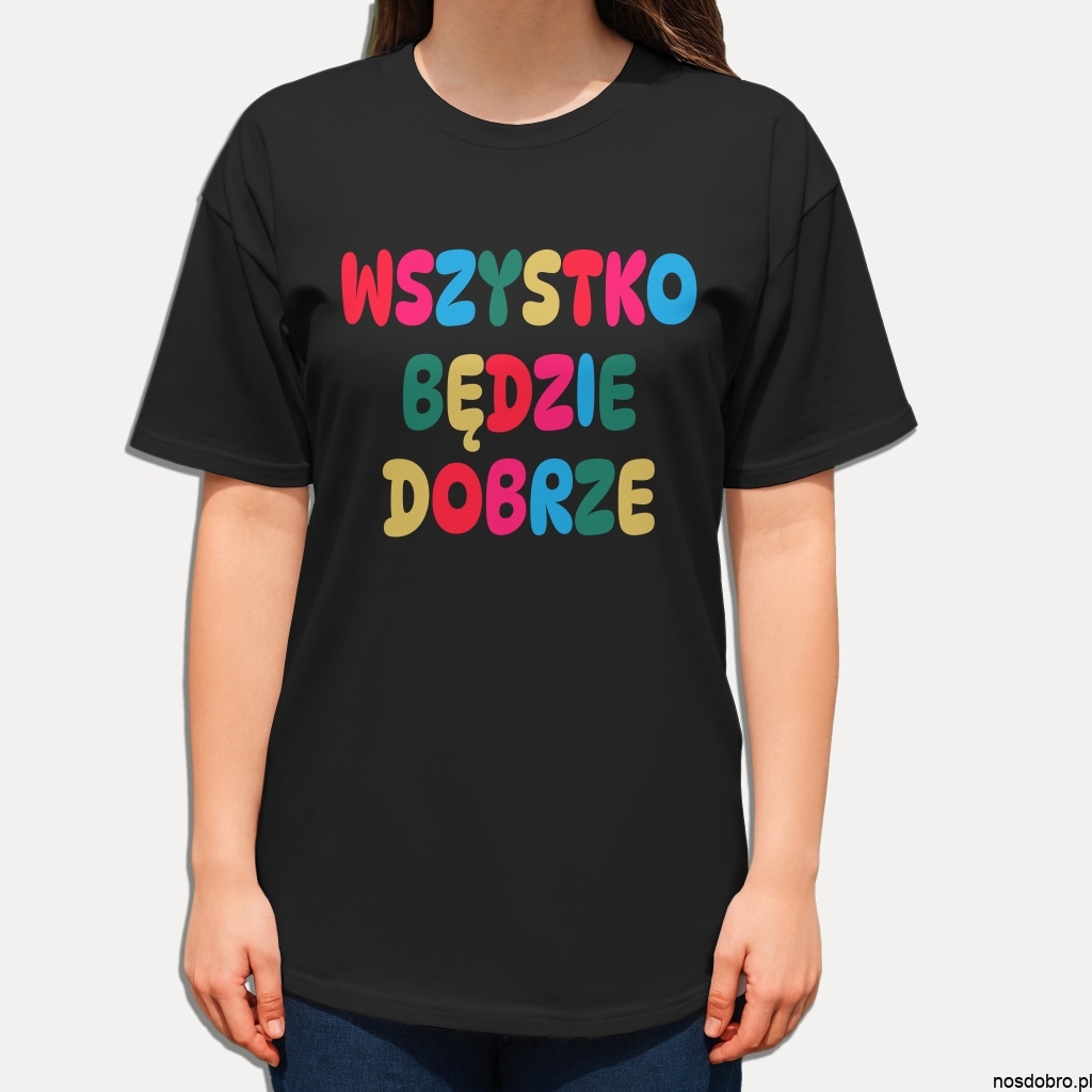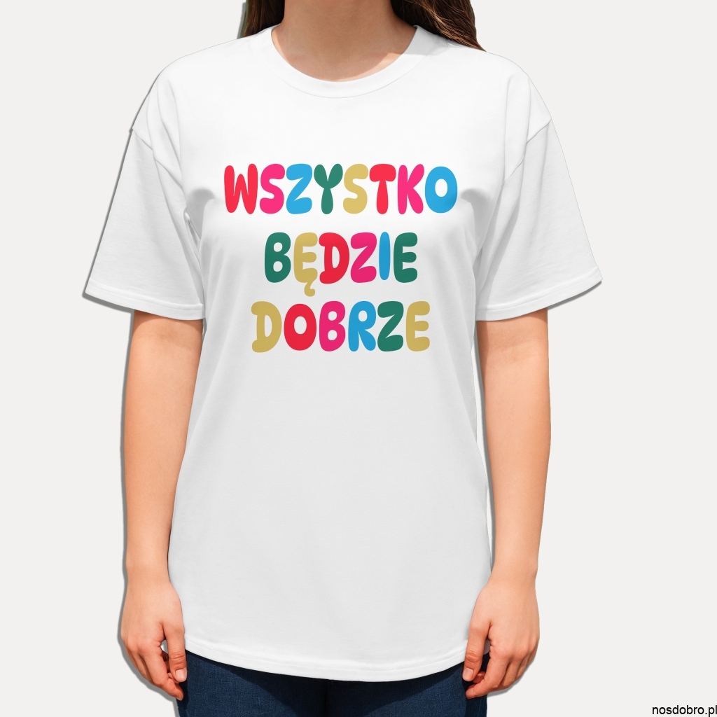 Koszulka Wszystko będzie dobrze – kolorowy nadruk pełen pozytywnej energii.